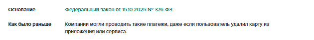 С 1 марта действует новое правило для абонентских договоров в интернете – оно касается оплаты интернет-подписок на различные сервисы. Теперь исполнителю нельзя списывать деньги без согласия клиента. Если пользователь отказался от автоматических платежей, компания не может использовать его старые реквизиты карты или счета. То есть она не может списать деньги с карты, которую он отозвал. Также организации должны обеспечить клиентам возможность запретить списывать деньги с определенного счета – в том числе в электронной форме, например через сайт или мобильное приложение.
