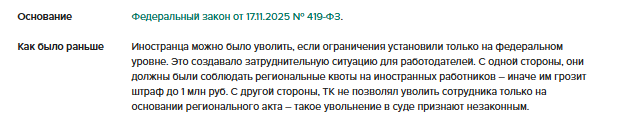 С 1 марта работодатели смогут увольнять иностранцев на специальном основании, чтобы выполнить требования региональных нормативных актов. Прекратить трудовой договор можно будет, если численность таких работников превышает значения или нарушает запреты, которые установили на уровне субъекта.