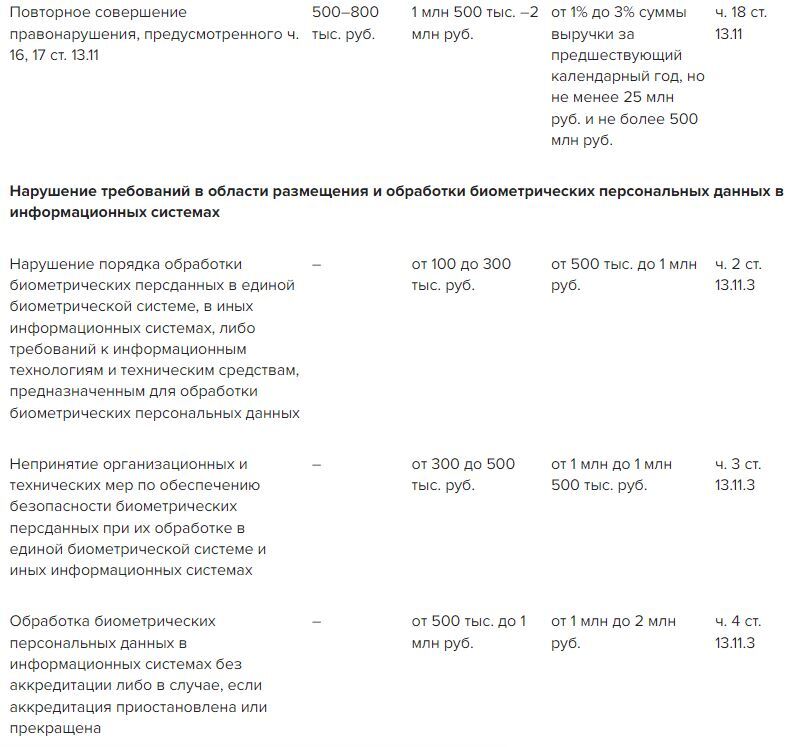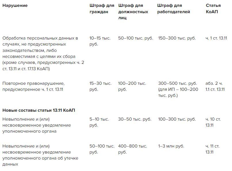 Кроме того, оштрафуют работодателей, которые не уведомили Роскомнадзор о намерении осуществлять обработку персданных и о случаях утечки персональных данных. Для этого статью 13.11 КоАП дополнили новыми составами правонарушений.