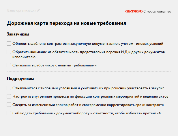 Как стало. Ввели единый набор типовых условий для всех закупок услуг стройконтроля по Закону № 44-ФЗ. Также теперь можно корректировать сроки контракта. Возьмите в работу образец контракта на стройконтроль. А как подготовиться к изменениям, смотрите в дорожной карте.