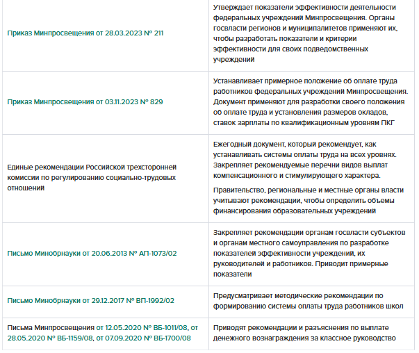 Чтобы разработать систему оплаты труда в школе и детском саду, ориентируйтесь на требования законодательства и рекомендации органов власти. Единого федерального нормативного акта, который устанавливает правила формирования системы оплаты труда в образовательных организациях, нет. В таблице собрали все НПА и письма, которые регулируют эти правила, и разъяснения, как применять акты.