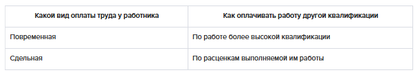Для работников с повременной и сдельной оплатой труда установлен разный порядок оплаты работ различной квалификации (ст. 150 ТК).