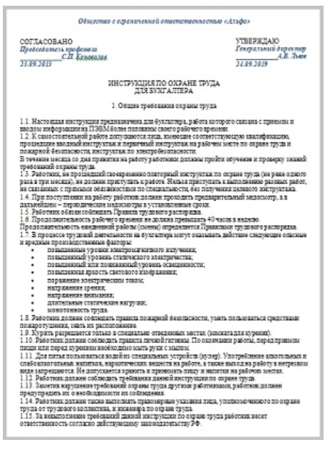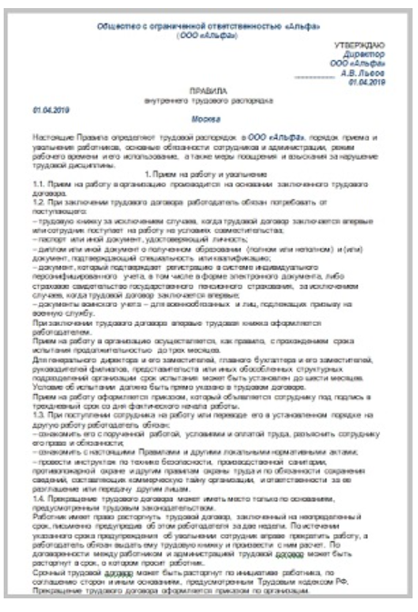 Рисунок 1. Образец Правил внутреннего трудового распорядка