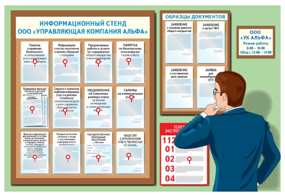 Как оформить информационные стенды в МКД и офисе УО, ТСЖ, ЖСК
