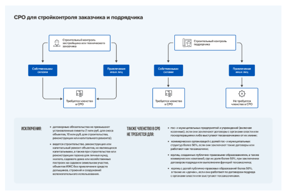 Помимо общих требований к членству в СРО, спорным для участников строительства оставался вопрос о необходимости СРО организациям строительного контроля. НОСТРОЙ же в новом разъяснении четко определил случаи, когда для СК заказчика и подрядчика потребуется допуск СРО.