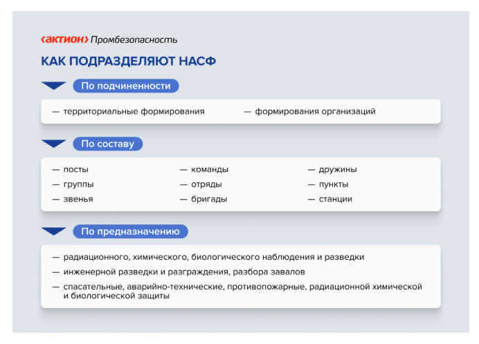НАСФ делят на три категории: по подчиненности, составу и предназначению. В памятке объяснили, какие формирования можно создать на предприятии.