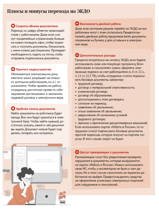 Памятка. Плюсы и минусы перехода на электронный кадровый документооборот