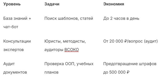 - Польза: Экономия 6–8 часов в месяц на поиске информации. Например, знание о новых требованиях к рабочей программе за 2 месяца до вступления предотвращает замечания при проверке.