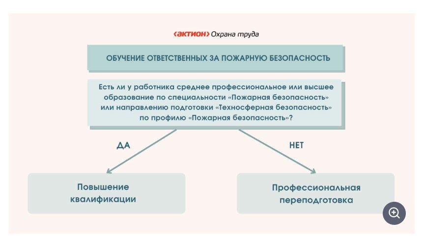 Вышеперечисленные работники также проходят профпереподготовку в учебном центре, если у них нет профильного образования и профессиональных компетенций в области пожарной безопасности.