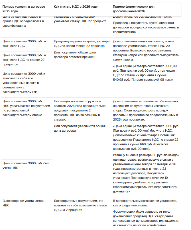 Когда и как оформить дополнительное соглашение из-за ставки НДС 22 процента с 2026 года