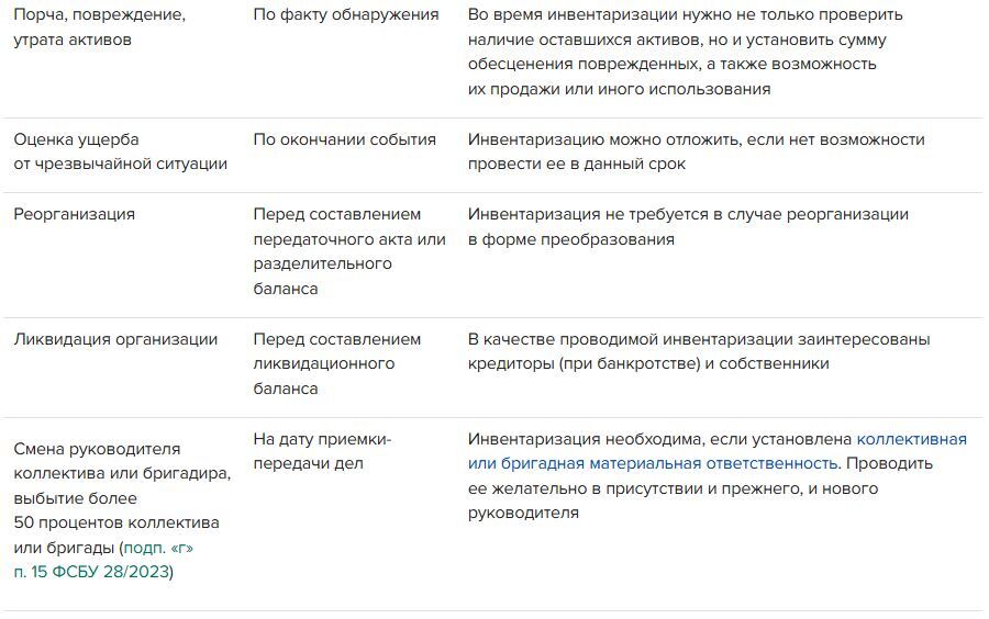 Таблица. Когда проводить обязательную инвентаризацию по ФСБУ 28/2023