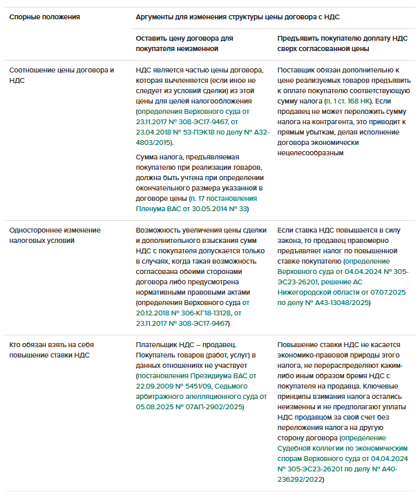 В таблице ниже смотрите аргументы за и против предъявления дополнительной суммы НДС покупателю из-за повышения ставки на 2 процента. Это поможет сторонам найти компромиссное решение в связи с переходом на новую ставку НДС.