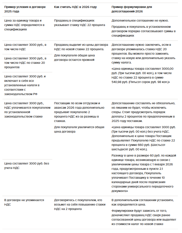 Когда и как оформить дополнительное соглашение из-за ставки НДС 22 процента с 2026 года
