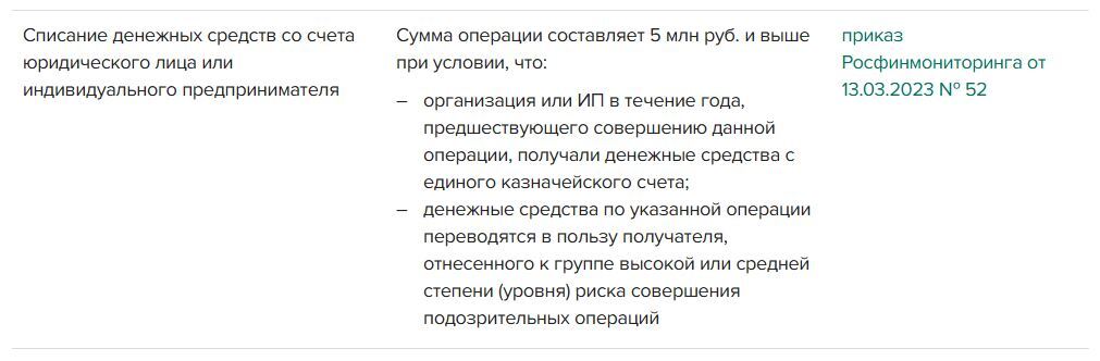 Перечень контролируемых банками операций не ограничен, поэтому под контроль могут попасть абсолютно все операции, совершаемые клиентом. Каждый банк обязан иметь правила внутреннего контроля, по которым сотрудники должны выявлять подозрительные операции. Правила внутреннего контроля разрабатывают в соответствии с положением ЦБ от 02.03.2012 № 375-П. В приложении к данному положению есть перечень признаков сомнительных операций, рекомендованных ЦБ. С 1 октября 2021 года перечень дополнили новыми признаками (Указание ЦБ от 20.10.2020 № 5599-У). Например, теперь смогут отказать в проведении операции по следующим новым основаниям: