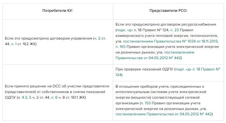 Таблица 1. Когда потребители и РСО участвуют в снятии показаний ОДПУ