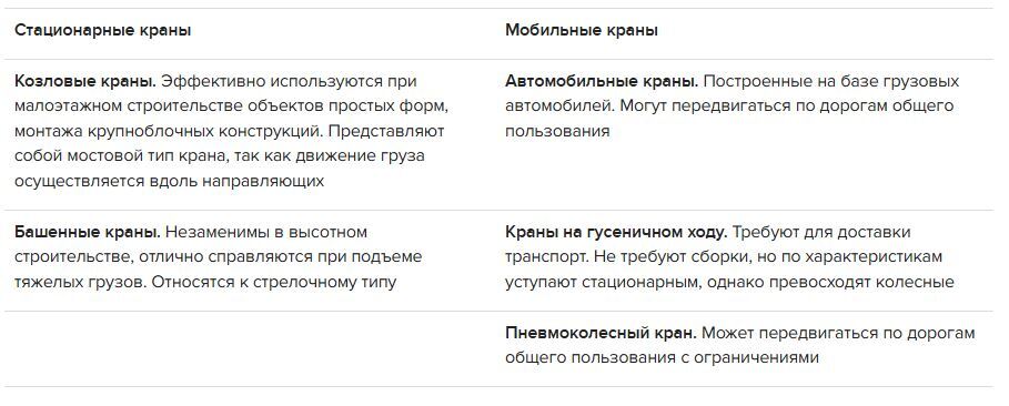 Виды использования кранов, их количество, типы – могут быть и одновременно разные группы – зависят от условий и экономической целесообразности на строительной площадке.