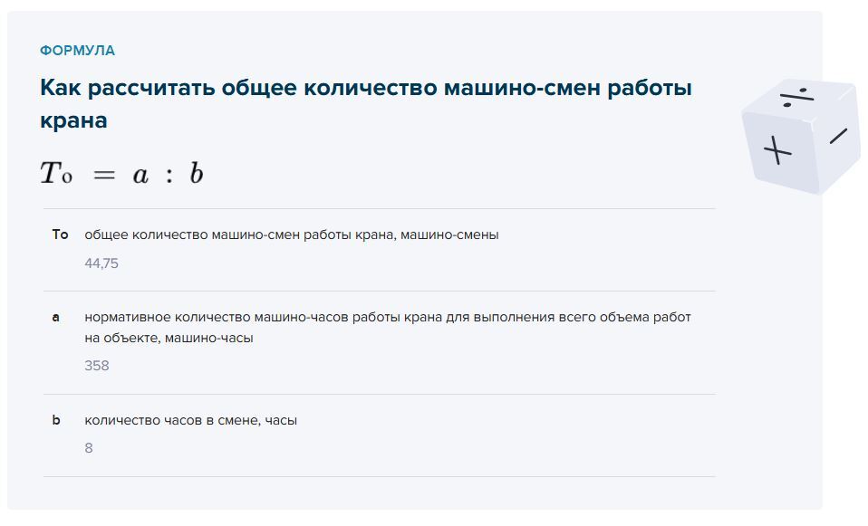 В строительстве вывели формулу, по которой можно определить требуемое количество кранов.