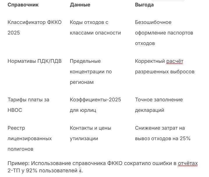- «Справочник специалиста по охране труда»: Разделы по экобезопасности производств. Польза: Соблюдение требований к опасным объектам;