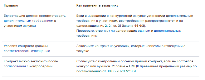 Правила прописаны в пунктах 24, 25 части 1, пункте 4 части 5 статьи 93 Закона № 44-ФЗ, предельные цены утвердило Правительство постановлением от 30.06.2020 № 961.